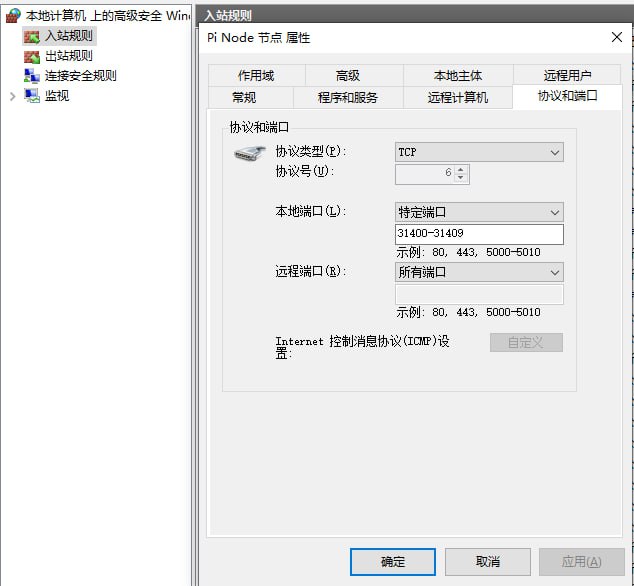 一键自动给防火墙规则添加 Pi Node 31400-31409 端口放行 就图个方便 其实手动也不麻烦 也就1分钟的事情