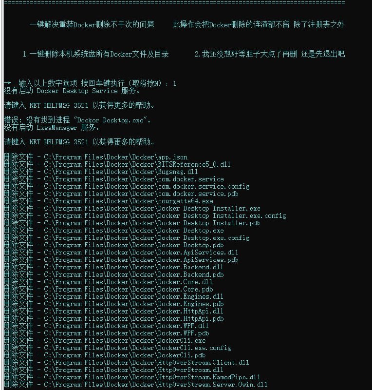 1.还是建议首先在控制面板去卸载 Docker,若确实遇到了未卸载干净才用这个一键删除程序